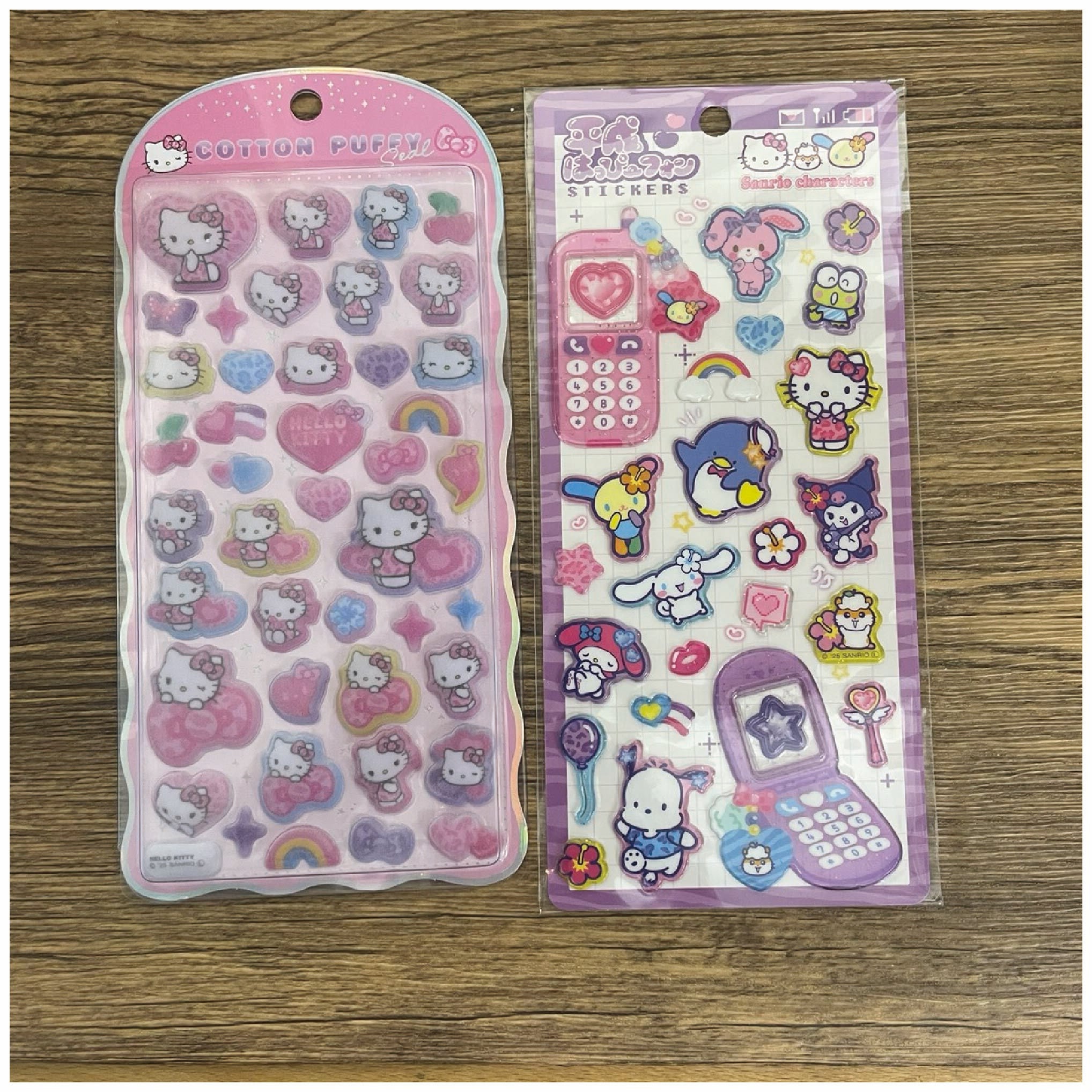 コットンパフィシール ハローキティ と 平成はっぴーフォン サンリオ 各1枚のセットです